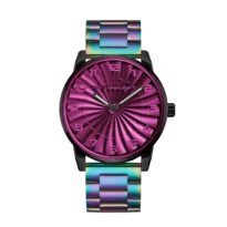 Jedes Zifferblatt wird einzeln mit Chamäleonpigmenten veredelt, die dynamische Farbverläufe entlang der geschwungenen Blätter erzeugen