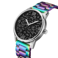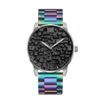Jedes Zifferblatt wird von Hand mit Chamäleonpigmenten veredelt und zeigt dynamische Farbübergänge, die an Skylines aus der Vogelperspektive erinnern