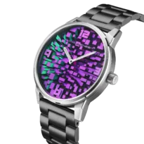 Jedes Zifferblatt wird von Hand mit Chamäleonpigmenten veredelt und zeigt dynamische Farbübergänge, die an Skylines aus der Vogelperspektive erinnern