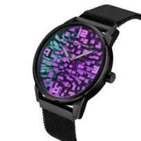Jedes Zifferblatt wird von Hand mit Chamäleonpigmenten veredelt und zeigt dynamische Farbübergänge, die an Skylines aus der Vogelperspektive erinnern