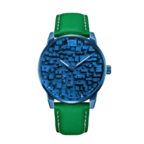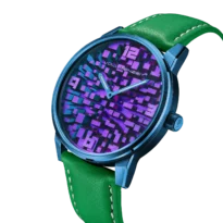 Jedes Zifferblatt wird von Hand mit Chamäleonpigmenten veredelt und zeigt dynamische Farbübergänge, die an Skylines aus der Vogelperspektive erinnern