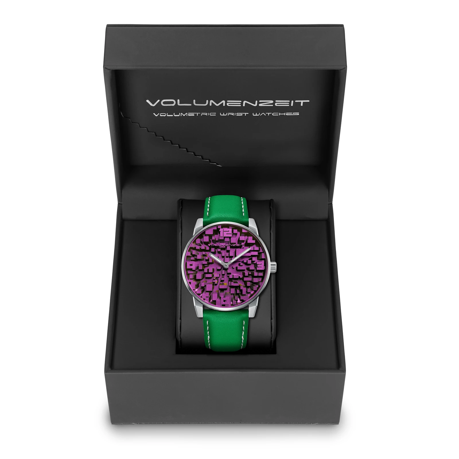 Volumenzeit is a German watch brand. The dials are produced and hand-finished in Germany. Final steps — including engraving, strap fitting, inspection, and quality control — are carried out in Germany before delivery.