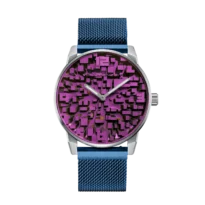 This dial captures the perspective of a city seen from above — a structured maze of rooftops, light, and motion.