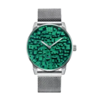 This dial captures the perspective of a city seen from above — a structured maze of rooftops, light, and motion.