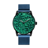 This dial captures the perspective of a city seen from above — a structured maze of rooftops, light, and motion.