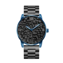 This dial captures the perspective of a city seen from above — a structured maze of rooftops, light, and motion.