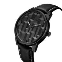 The dial is not flat. It has a physically sculpted structure with real depth. It is not 3D-printed — the geometry is precisely manufactured and then hand-finished to achieve clean edges and controlled reflections.