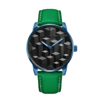 Each dial is individually hand-painted with color-shifting pigments, creating a unique optical effect on every watch
